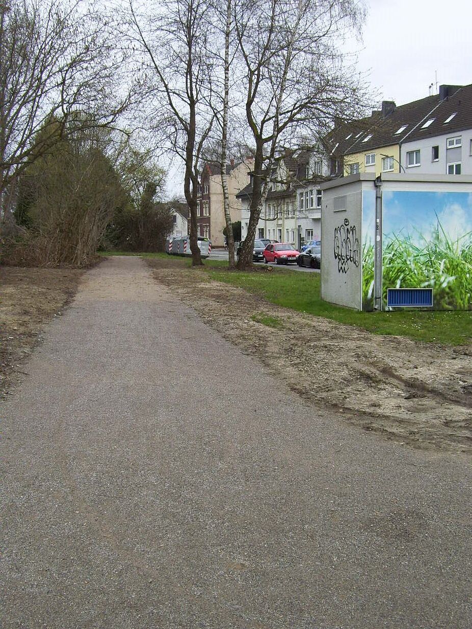 Die ehemalige Bahntrasse zwischen Schüren und Neuasseln, wurde 1985 zu einem Rad- und Wanderweg ausgebaut. Der Weg im östlichsten Teil zwischen Leni-Rommel-Straße und Schwarzer Weg /Matilda-Wrede-Straße wuchs immer mehr zu, war nur noch ein schmaler Pfad. Ein Antrag im Januar 2015 an das Tiefbauamt, eine genügende Wegebreite wieder herzustellen, wurde aus finanziellen Gründen abgelehnt; zudem gäbe es parallele Wege und Straßen. Schließlich waren die letzten 50 m von der B1-Brücke bis zumSchwarzen Weg ganz mit Sträuchern zugewachsen, der Weg war ganz verschwunden, noch nicht einmal ein Trampelpfad existent. Im Juni 2017 stellten die beiden zuständigen Bezirksvertretungen, Aplerbeck und Brackel Anträge zur Wiederherstellung des Weges. Der Bereich in Aplerbeck von Leni-Rommel-Str. bis zur B1-Brücke wurde im November 2017 wieder hergerichtet, aber nicht die letzten 50 m bis zum Schwarzen Weg im Bereich Brackel. Ein inzwischen pensionierter Mitarbeiter des Grünfächenamtes bezweifelte sogar, das hier jemals ein Weg gewesen sei. Auf alten Luftbildern, Ende der 1980er, ist der Weg aber zu eindeutig erkennen. Immer wieder gab es Hinderungsgründe, um den völlig verschwundenen Weg wieder herzustellen. Das geschah erst jetzt im März. So kann von der Leni-Rommel-Str. jetzt direkt bis Schwarzer Weg /Matilda-Wrede-Str. gefahren werden, ohne illegal den Bürgersteig der nahe gelegenen Aplerbecker Str., in Fahrtrichtung Osten, sogar als „Geisterfahrer“ als Ersatzweg befahren zu müssen.
