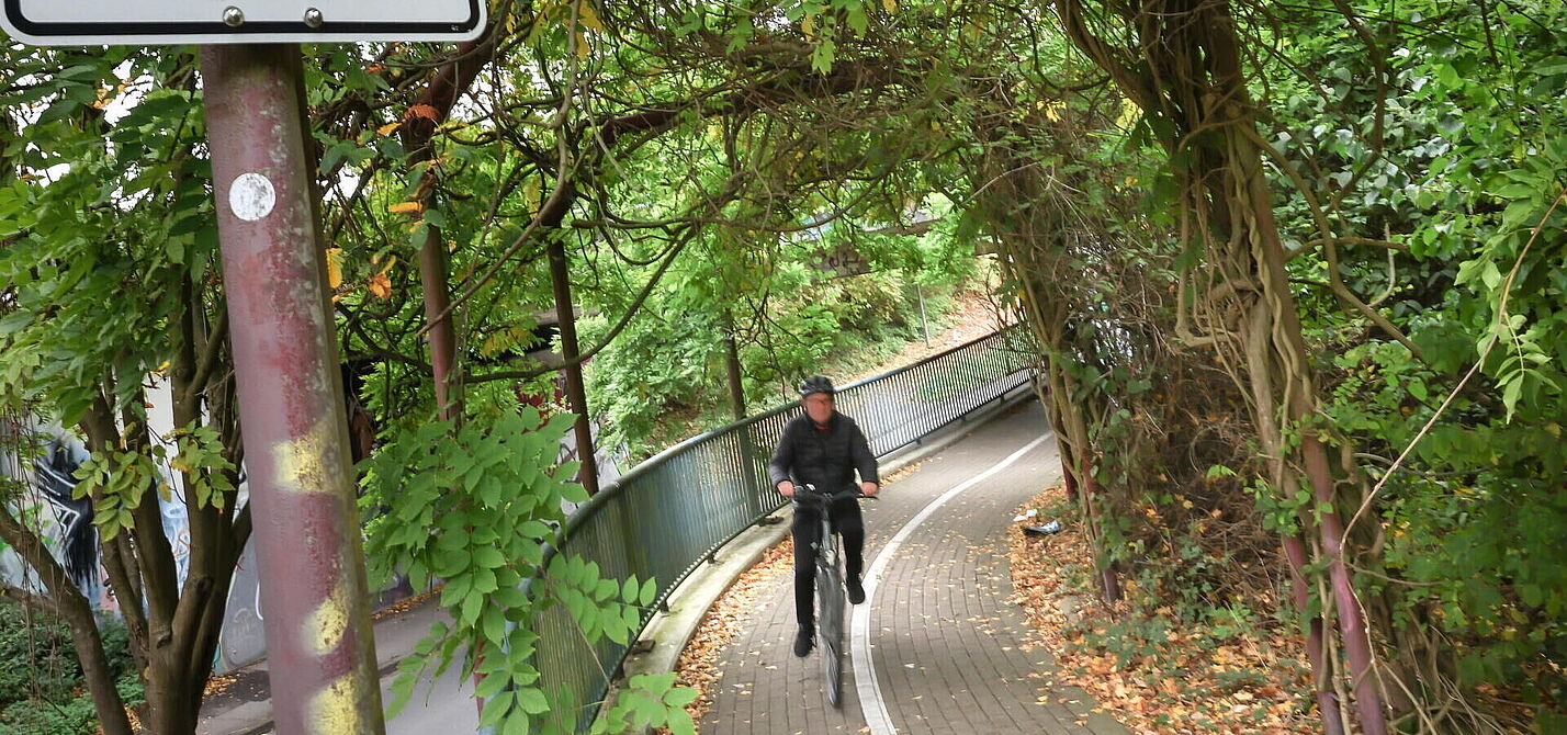 Die betreffende Stelle des Zweirichtungs-Fuß- und Radwegs ist mit einer Gesamtbreite von nur etwa 2,30 Metern äußerst schmal und zudem aus beiden Richtungen nicht einsehbar. Selbst bei Einhaltung der vorgeschriebenen Schrittgeschwindigkeit kann es hier zu gefährlichen Begegnungen kommen. Erst vor kurzem wurde an dieser Stelle eine Radfahrerin schwer verletzt.