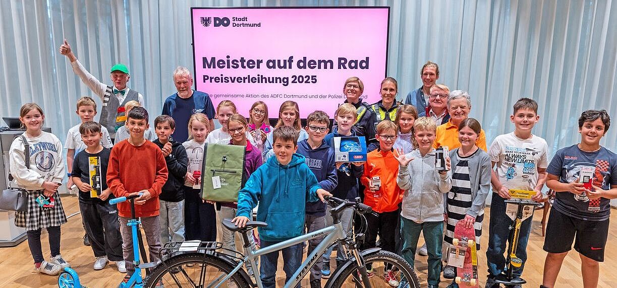 Der diesjährige Wettbewerb "Meister auf dem Rad" war ein voller Erfolg: 232 Kinder aus Dortmund haben an der beliebten Fahrradprüfung teilgenommen – das sind zweieinhalb Mal mehr als im Vorjahr. Die Veranstaltung wurde gemeinsam vom ADFC Dortmund und der Polizei Dortmund organisiert und erfreut sich wachsender Beliebtheit. Die 20 besten Kinder werden zur Preisverleihung der Stadt Dortmund eingeladen. Diese findet im feierlichen Rahmen statt und würdigt die besonderen Leistungen der jungen Radfahrerinnen und Radfahrer. Die Auswertung und Ergebnisse werden in etwa drei Wochen auf der Webseite des ADFC Dortmund veröffentlicht. Die Organisatoren bedanken sich bei allen Teilnehmenden und Helfenden für die großartige Unterstützung.