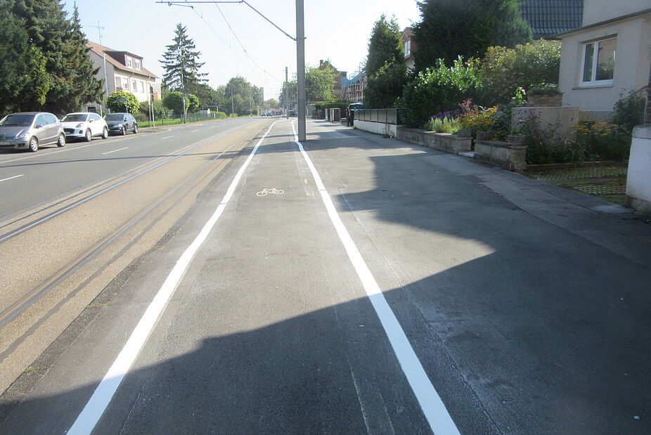 Der Radweg auf der Südseite am Asselner und Wickeder Hellweg wurde im August 2017 markiert. Seitdem sind die Markierung z.T. stark verblasst oder verschwunden, weil viele Bereiche neu asphaltiert wurden.