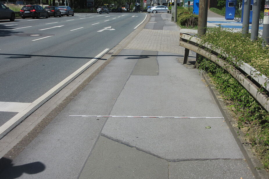 Genauso ist die Stadt verpflichtet, dass die Rad- und Fußwege den Erfordernissen der Sicherheit und Ordnung jederzeit genügen. Der gemeinsame Geh- und Radweg an der Nordseite der B 1 entlang der Aral-Tankstelle direkt östlich der Semerteichstraße ist einschließlich Bordstein nur 2,20 Meter bis 2,30 Meter breit und durch Laternen und Leitplanken stellenweise noch weiter verengt.