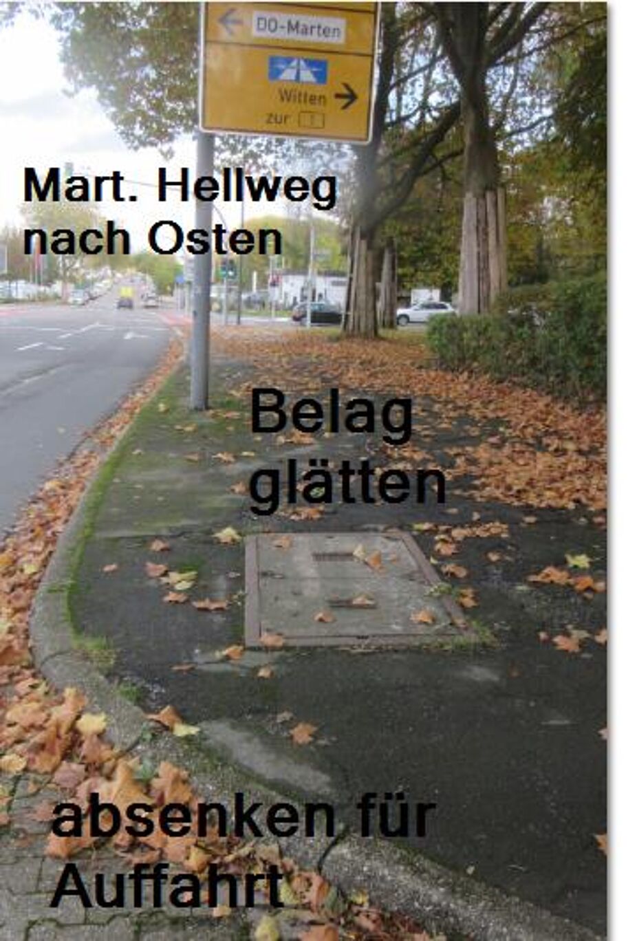 Die Neuanlage von Radfahrstreifen zwischen der Straße Fine Frau und dem Martener Hellweg bringt eine wesentliche Verbesserung für den Radverkehr. Radfahrende haben jetzt eine eigene Fahrspur, müssen nicht mehr dieselbe Spur befahren wie der Autoverkehr und dabei u.U. mit im Stau stehen.