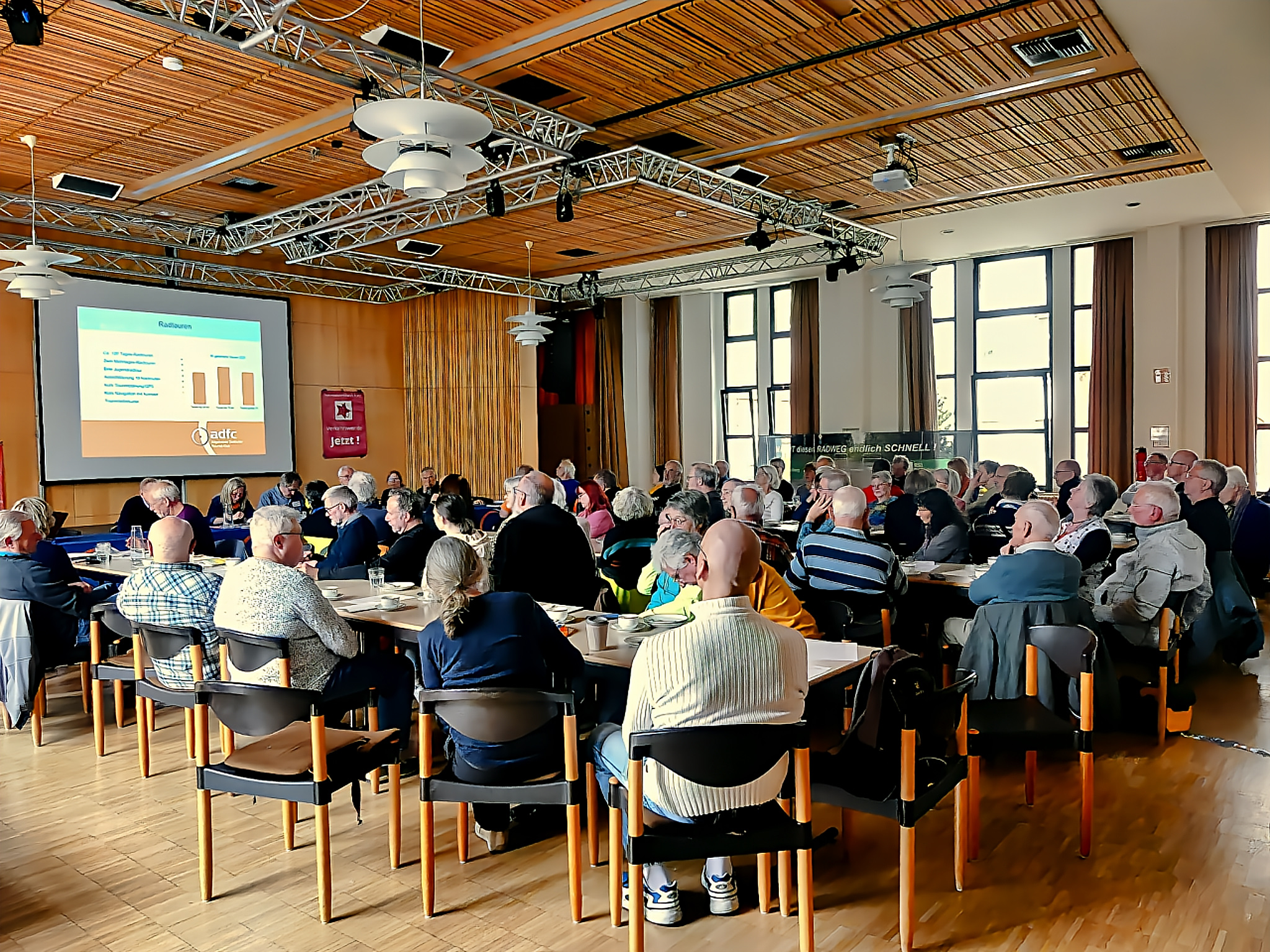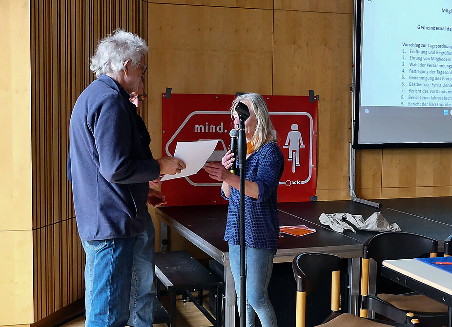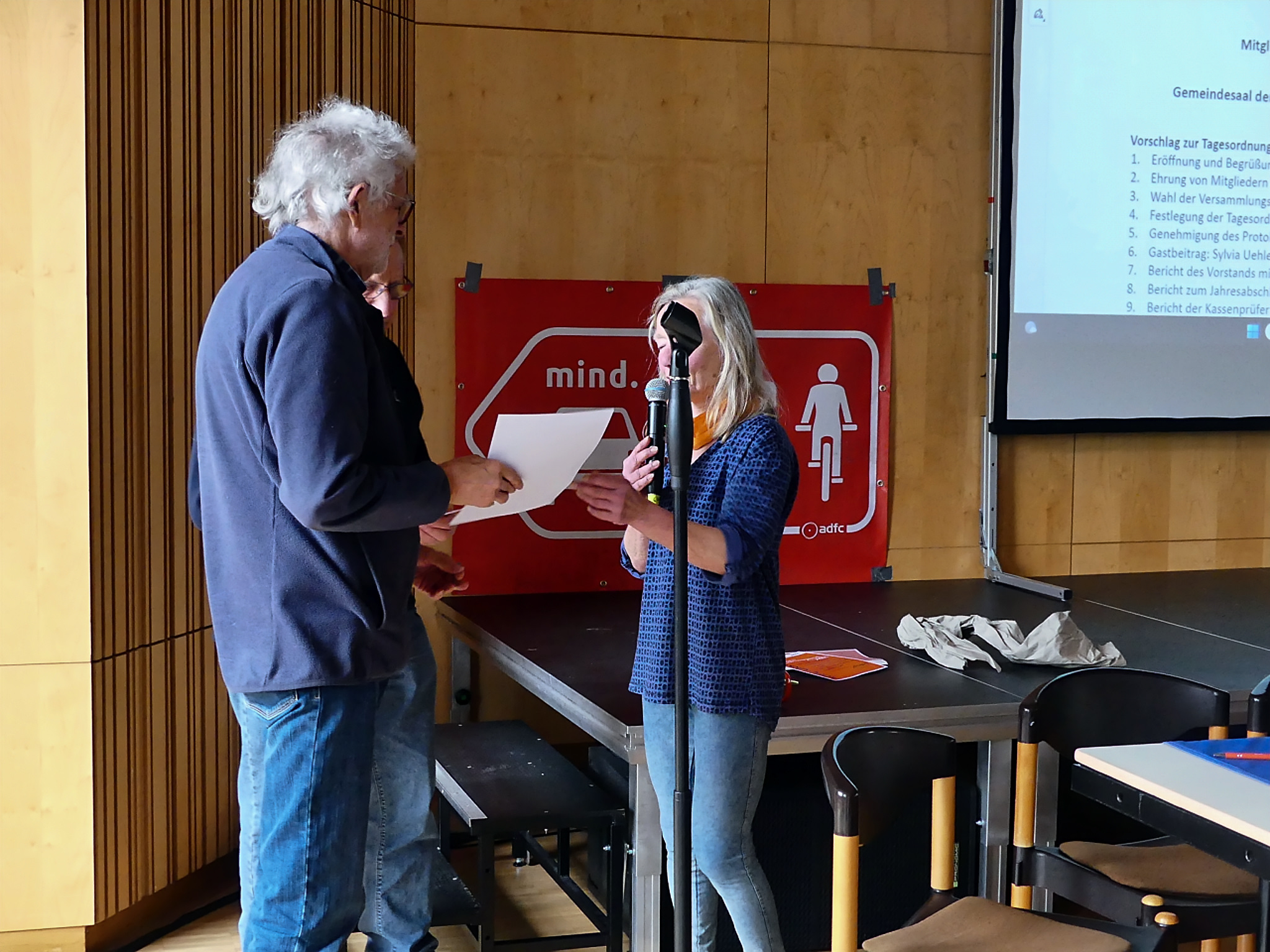 Zu Beginn der Versammlung informierte Sylvia Uehlendahl, Leiterin des Tiefbauamtes, über den aktuellen Stand der Velorouten und beantwortete Fragen der Anwesenden. 2 Mitglieder wurden für 25 bzw. 40 Jahre Mitgliedschaft geehrt.