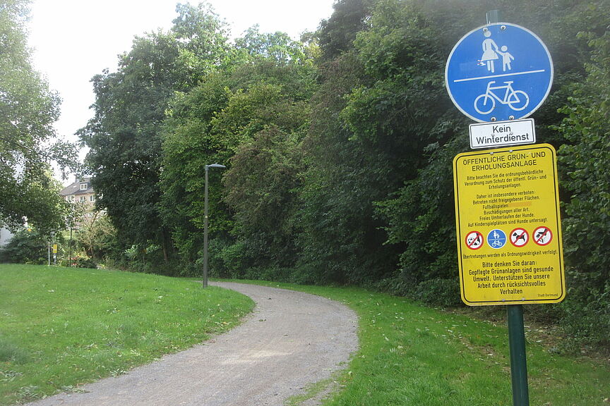 - Südlicher Asphaltweg im Pferdebachtal: Auch hier war bisher kein offizielles Radwegschild vorhanden – jetzt ist Radfahren auch dort erlaubt.