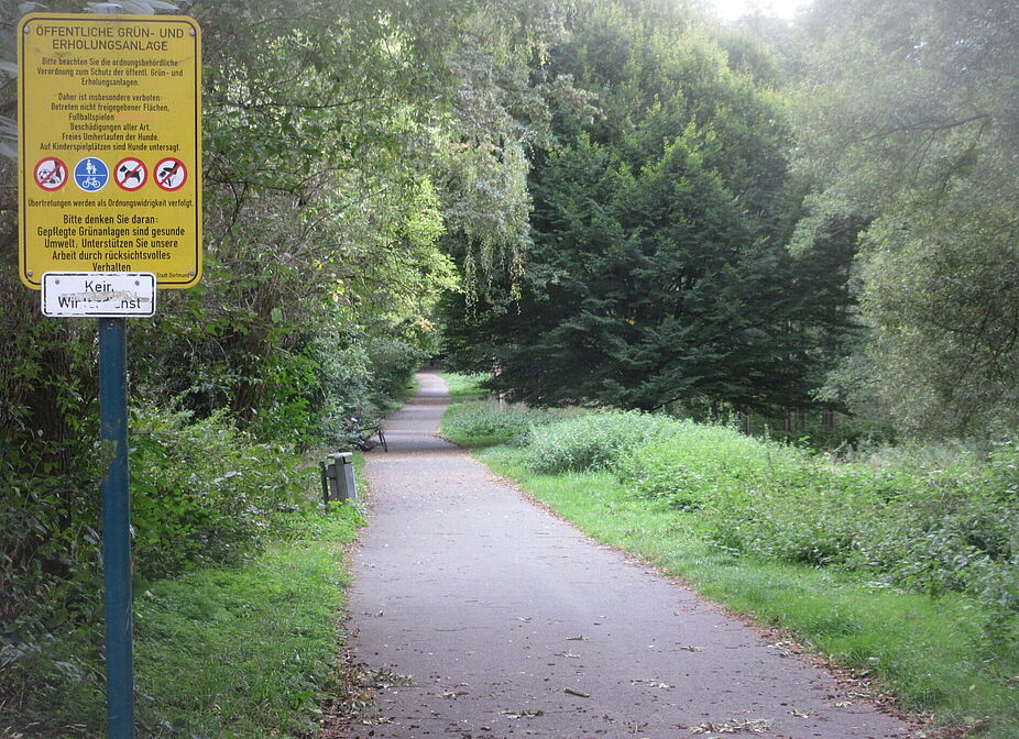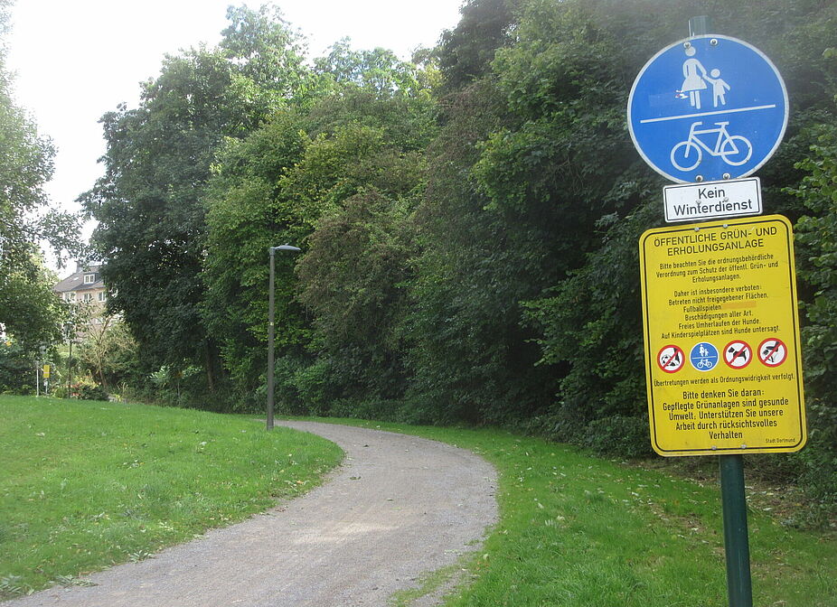 - Pferdebachtal in Hörde: Auf dem nördlichen Schotterweg und auch in der kleinen Grünfläche bei der Verlängerung der Konrad-Glocker-Straße zur Kapitelwiese wurden die Verbote bereits durch neue Aufkleber ersetzt.